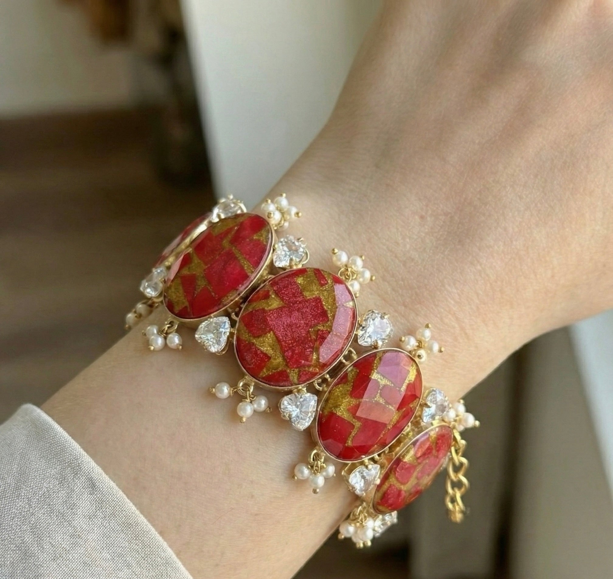 Introducing the Fawzi Crackle Bracelet - a stunning and modern piece featuring a beautiful crackle design adorned with sparkling crystals. Elevate any outfit with this eye-catching accessory. Expertly crafted to provide a unique and elegant look. Perfect for special occasions or everyday wear.