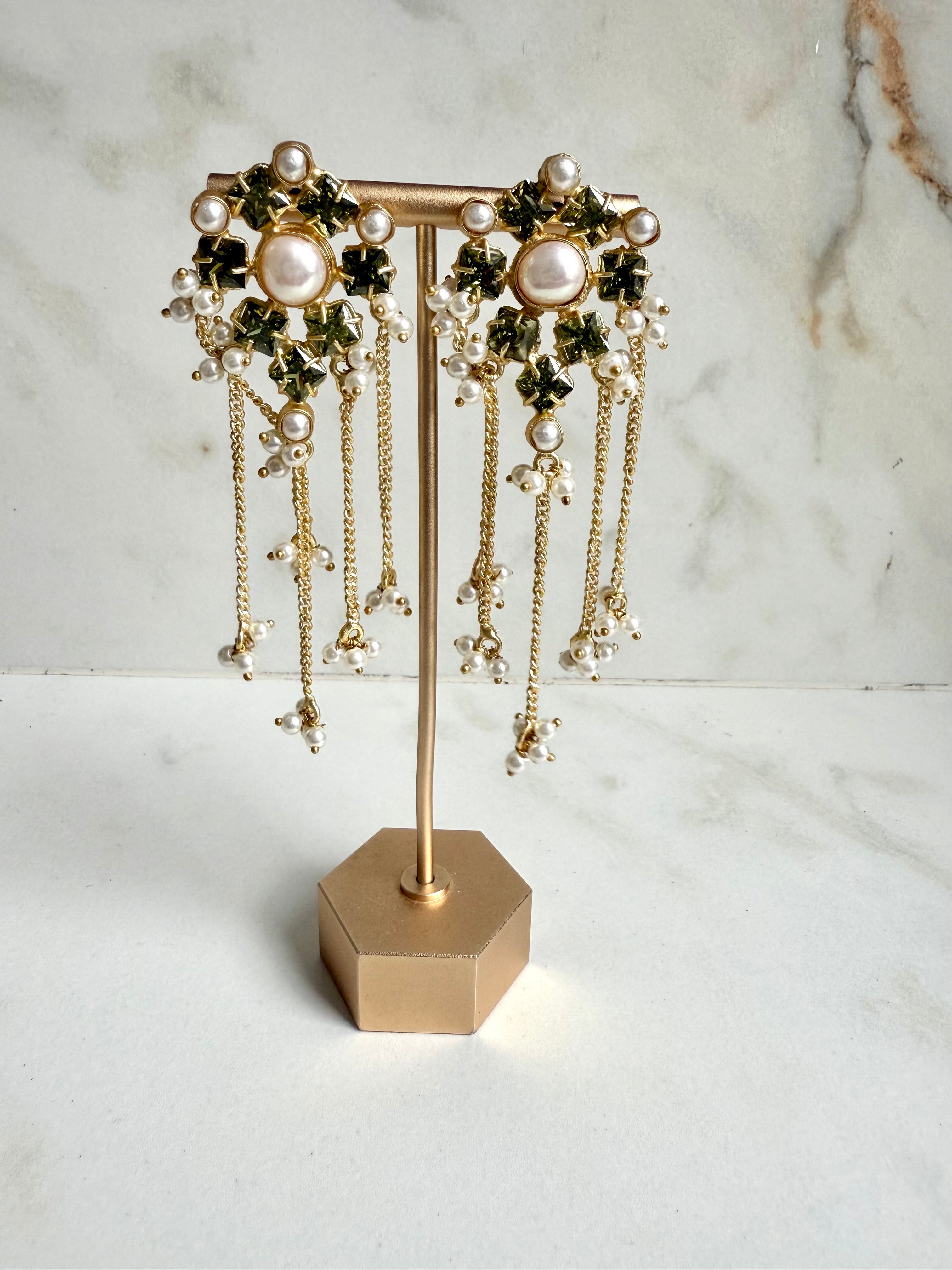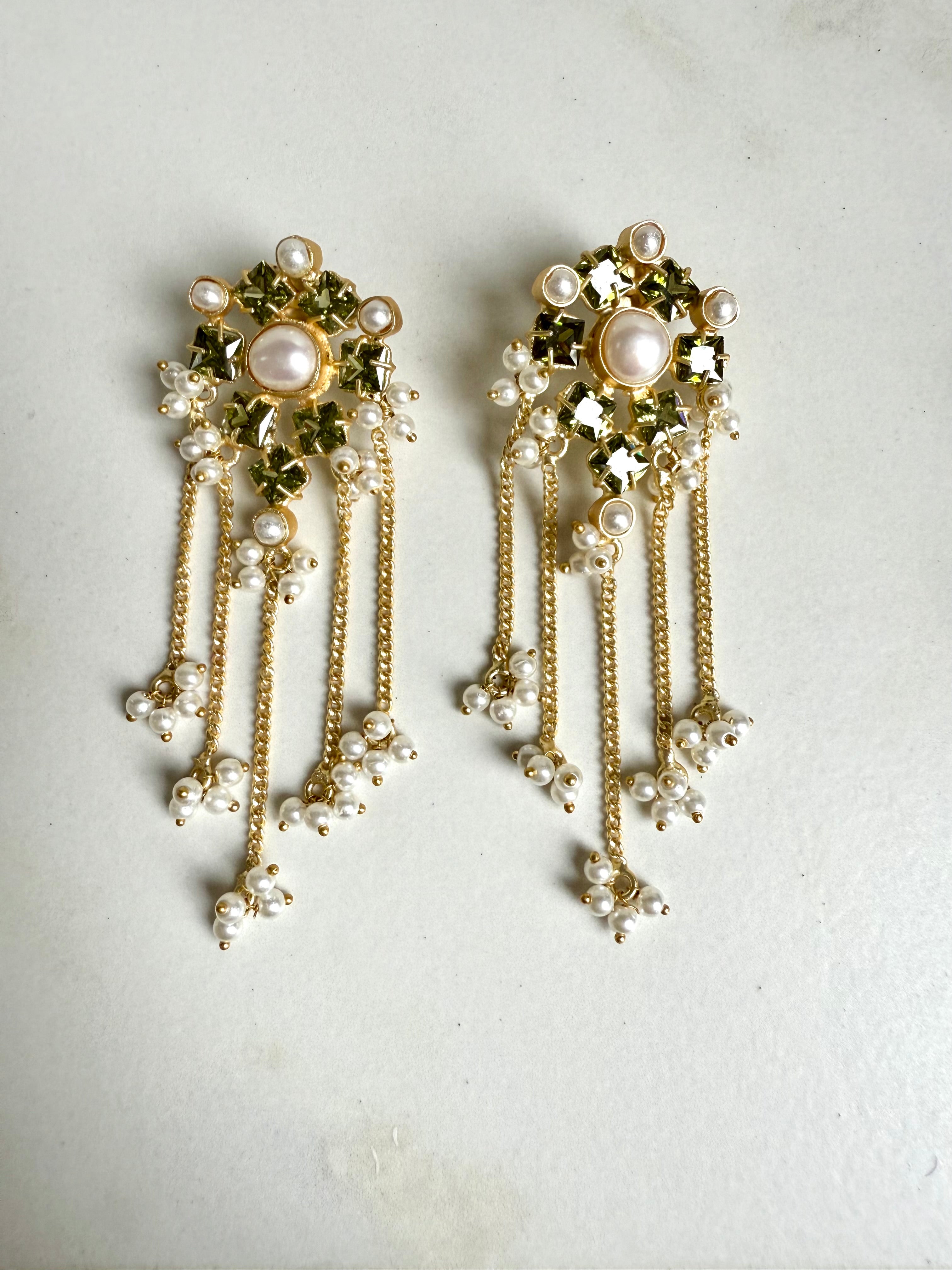 Enhance your outfit with these stunning Lavanya green Crystal Tassel Earrings. The vibrant crystals and elegant tassel drop add a touch of glamour to any look. Perfect for any occasion, these earrings are a must-have for any jewelry collection. Made with high-quality materials for a lasting, luxurious look.