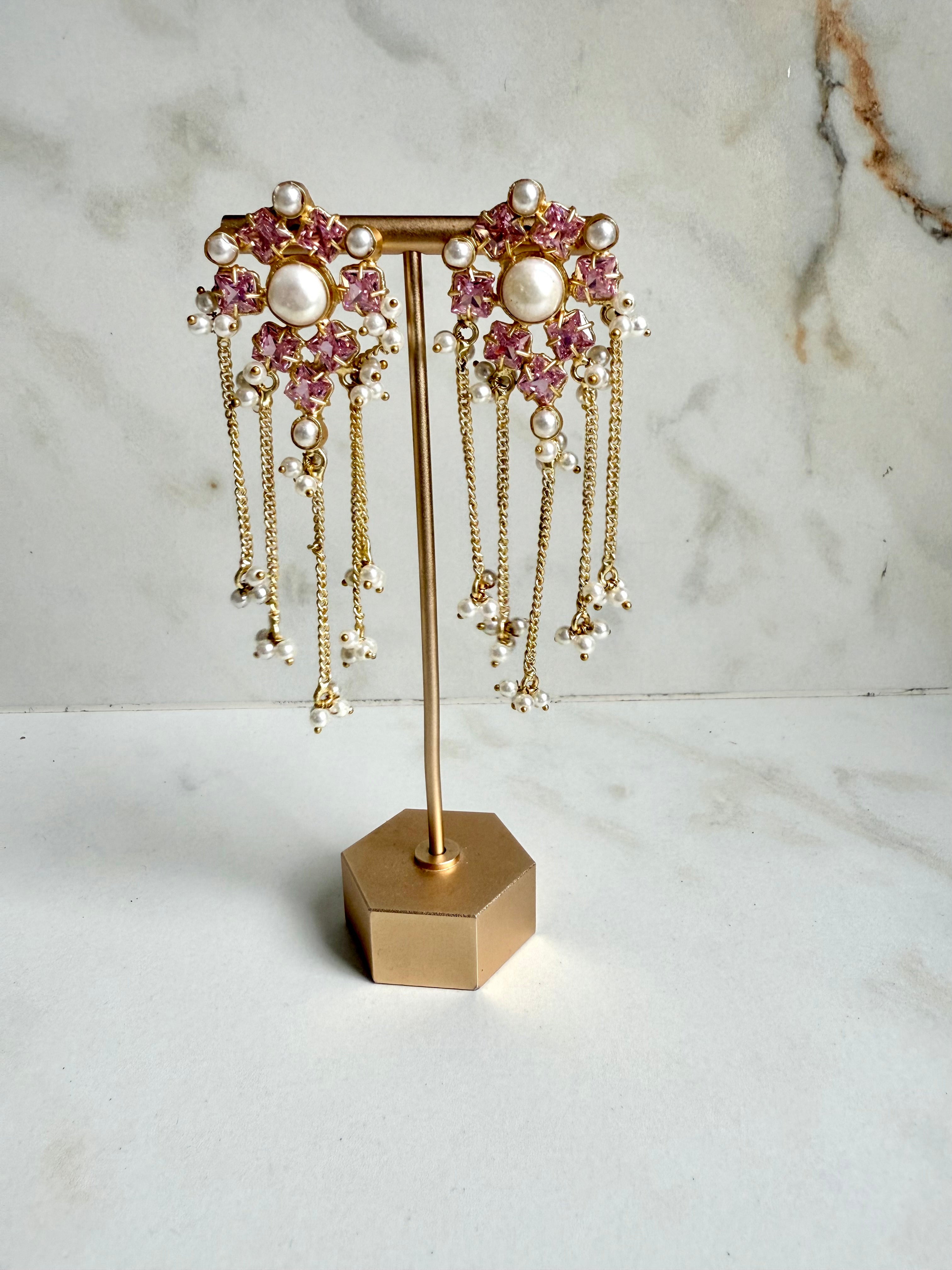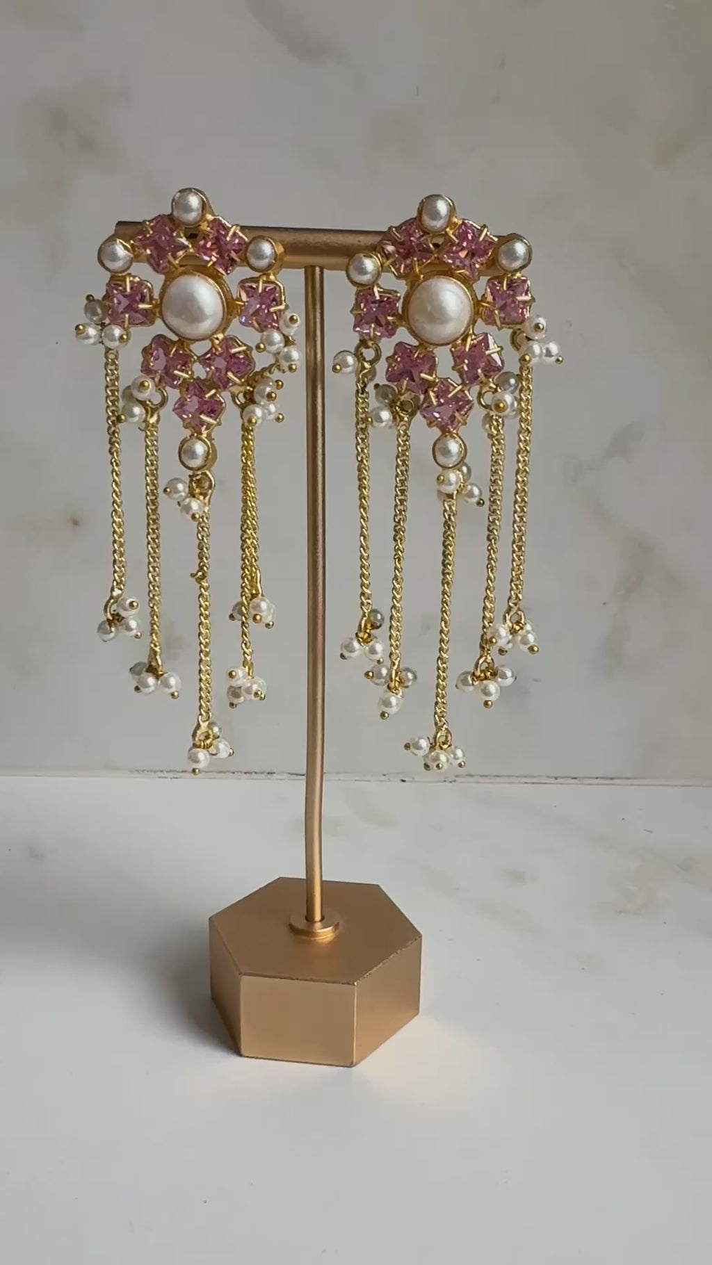 Enhance your outfit with these stunning Lavanya Pink Crystal Tassel Earrings. The vibrant crystals and elegant tassel drop add a touch of glamour to any look. Perfect for any occasion, these earrings are a must-have for any jewelry collection. Made with high-quality materials for a lasting, luxurious look.