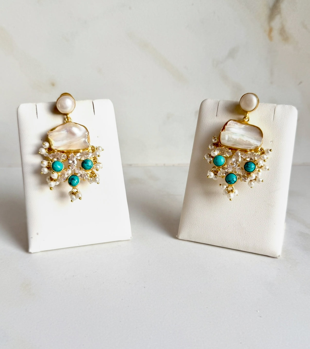 These exquisite pearl cluster earrings feature a circular design adorned with sparkling crystals. Hand-crafted with care, they add a touch of elegance and sophistication to any look. Elevate your style with these stunning earrings that combine classic pearls with modern crystal accents.
