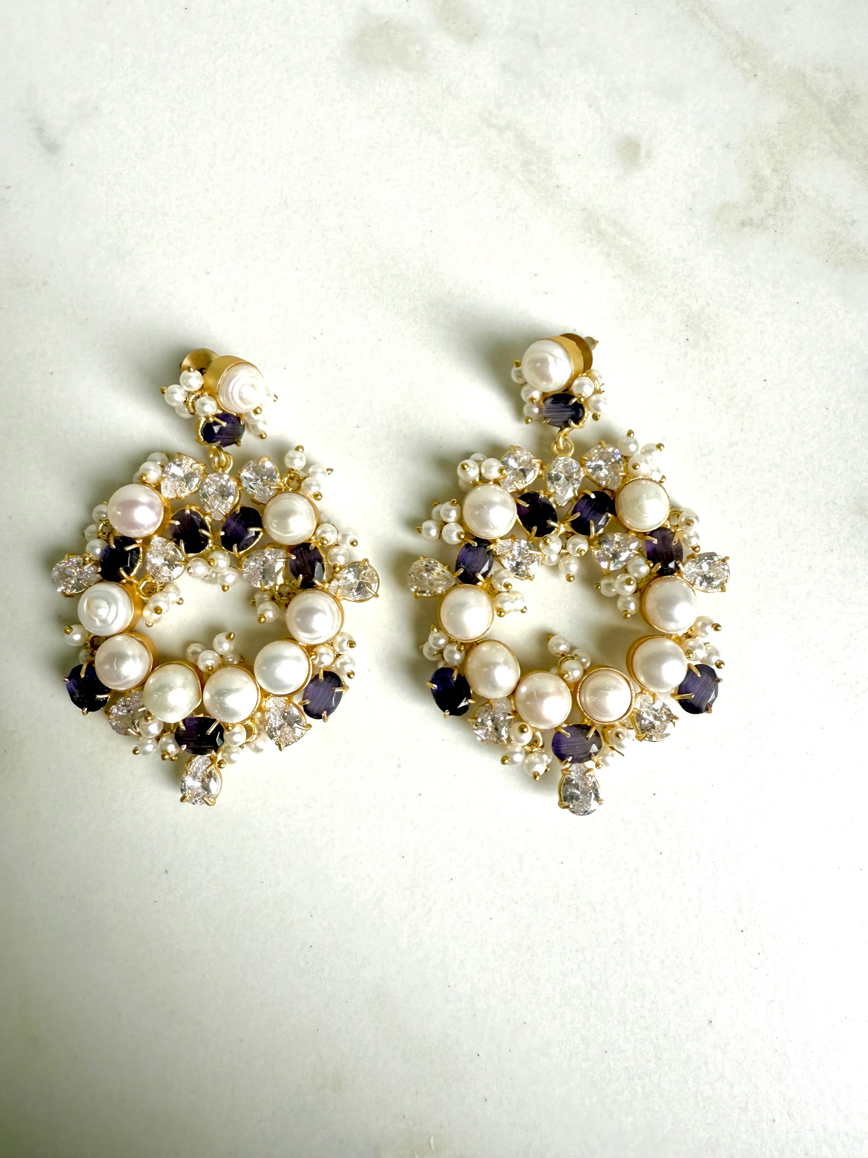 Introducing Priya Royal Chandbalis- exquisite royal earrings featuring a stunning array of pearls and crystals. With intricate detailing, these earrings exude true elegance. Experience the luxury and refinement of these statement pieces to elevate any outfit.