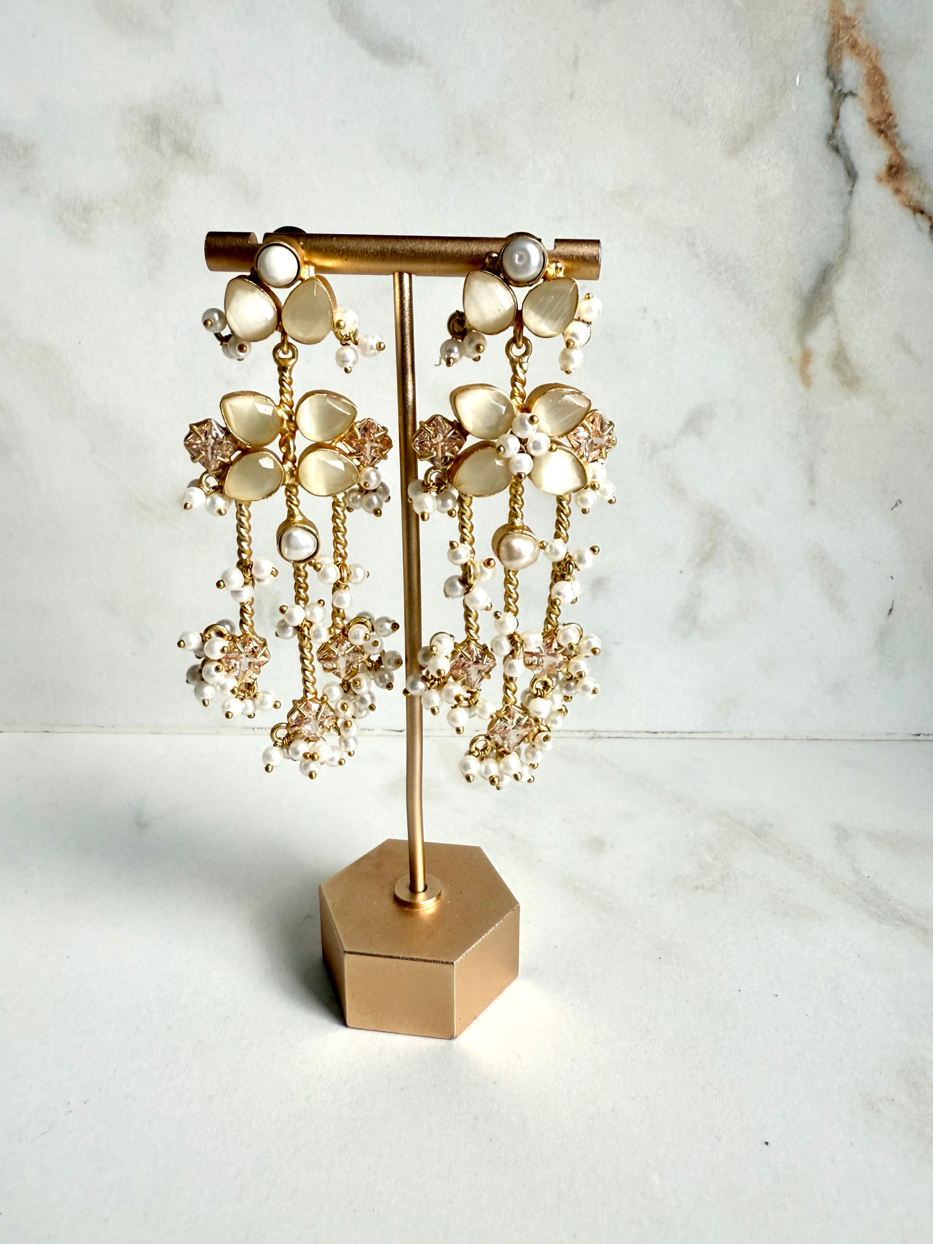 These Samah Long Statement Earrings are perfect for those who love a long drop earring. With their intricate design, they make a gorgeous statement piece on their own, eliminating the need for a necklace. Elevate your look with these stunning earrings.