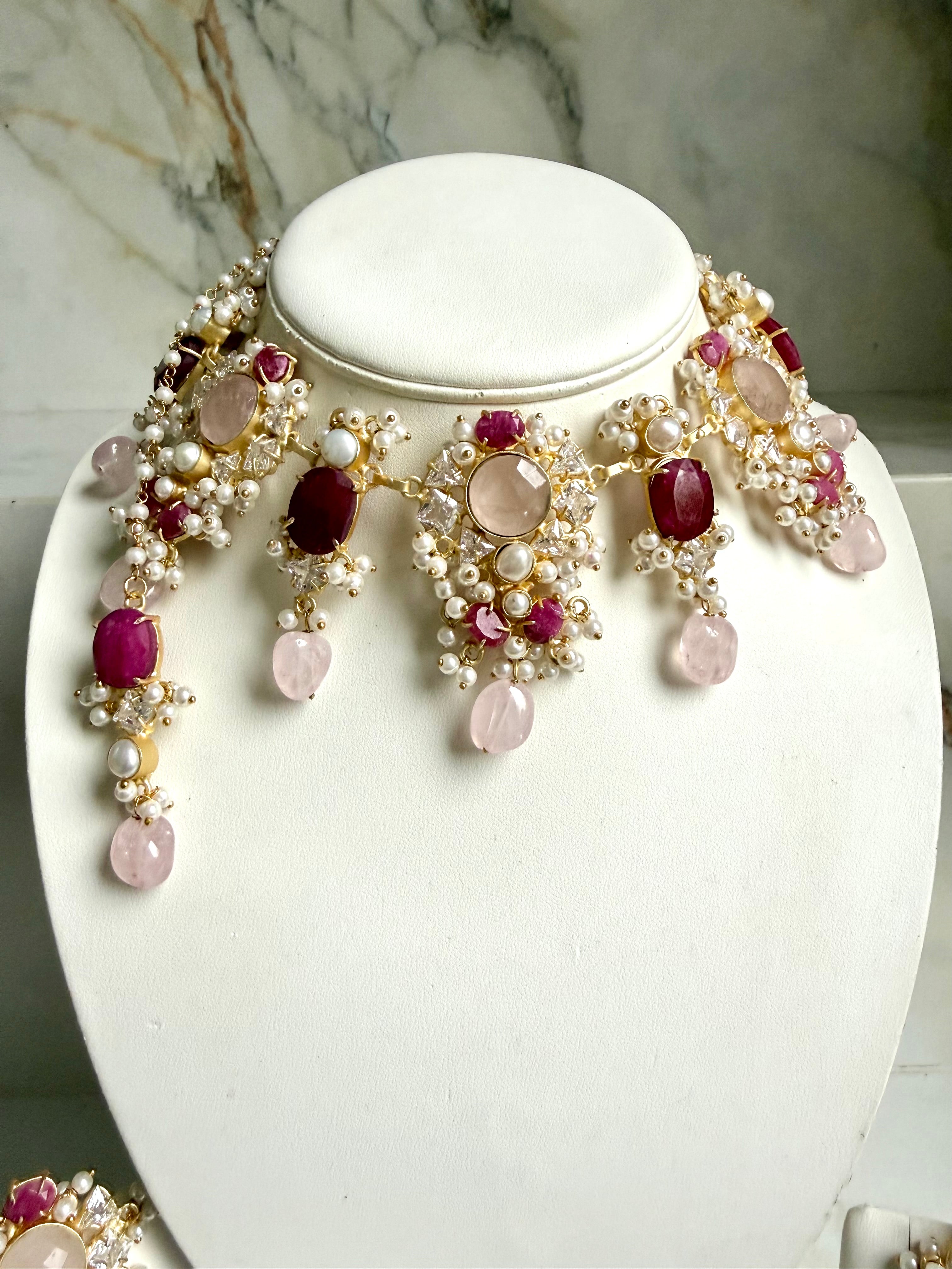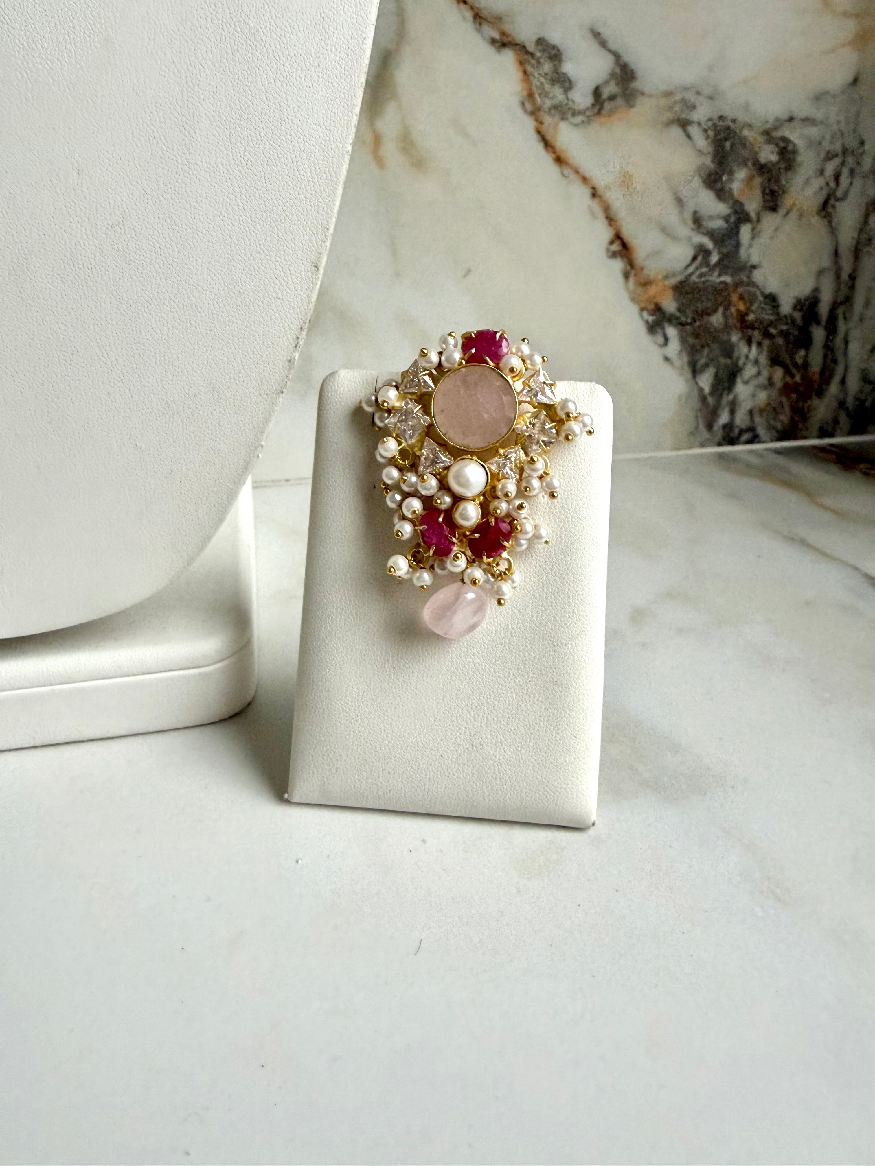 The Amara Luxury Quartz Set features exquisite drop stones paired with a stunning tika. This set is designed to enhance elegance and sophistication, making it ideal for special occasions. Its use of high-quality quartz provides a durable and visually appealing accessory that complements various styles.