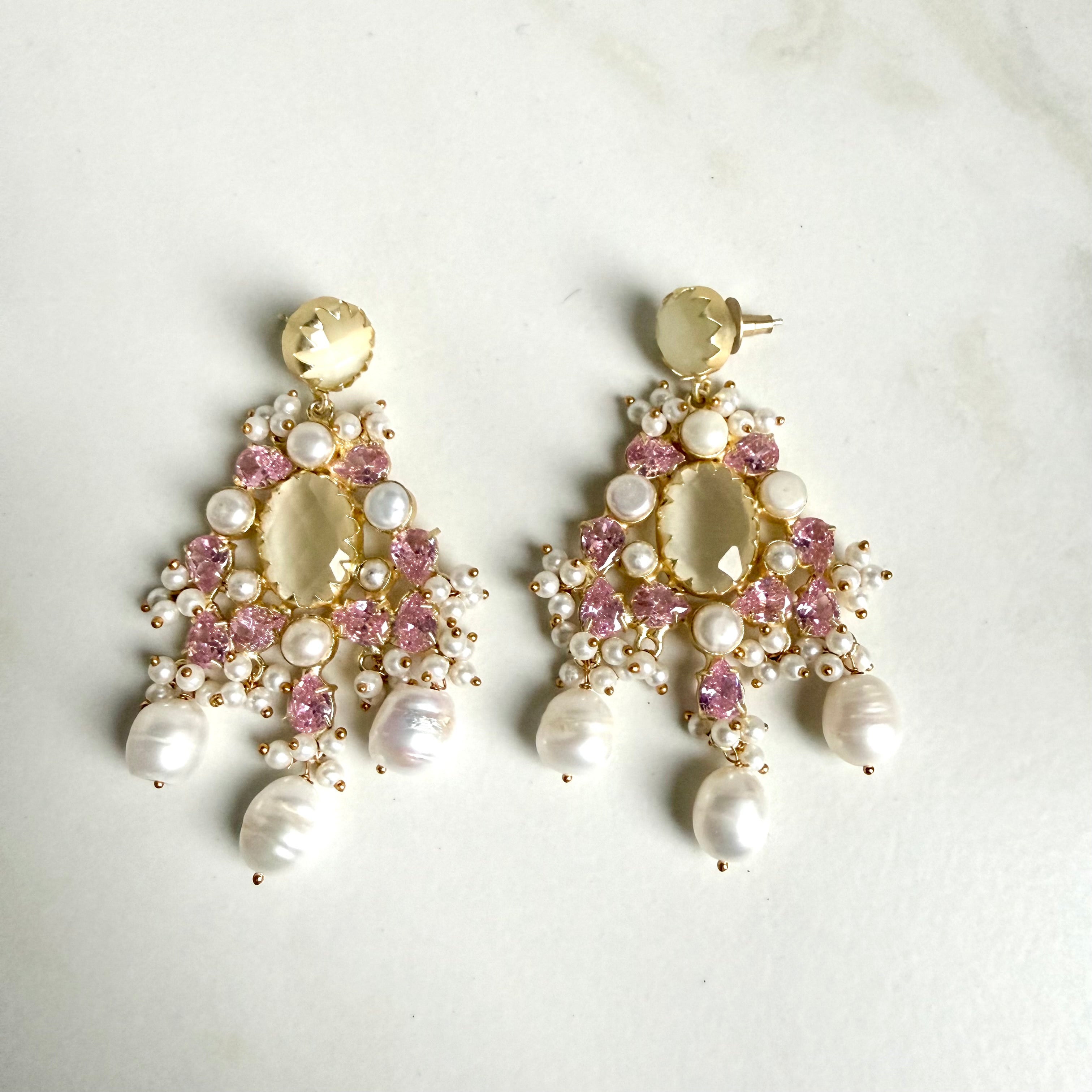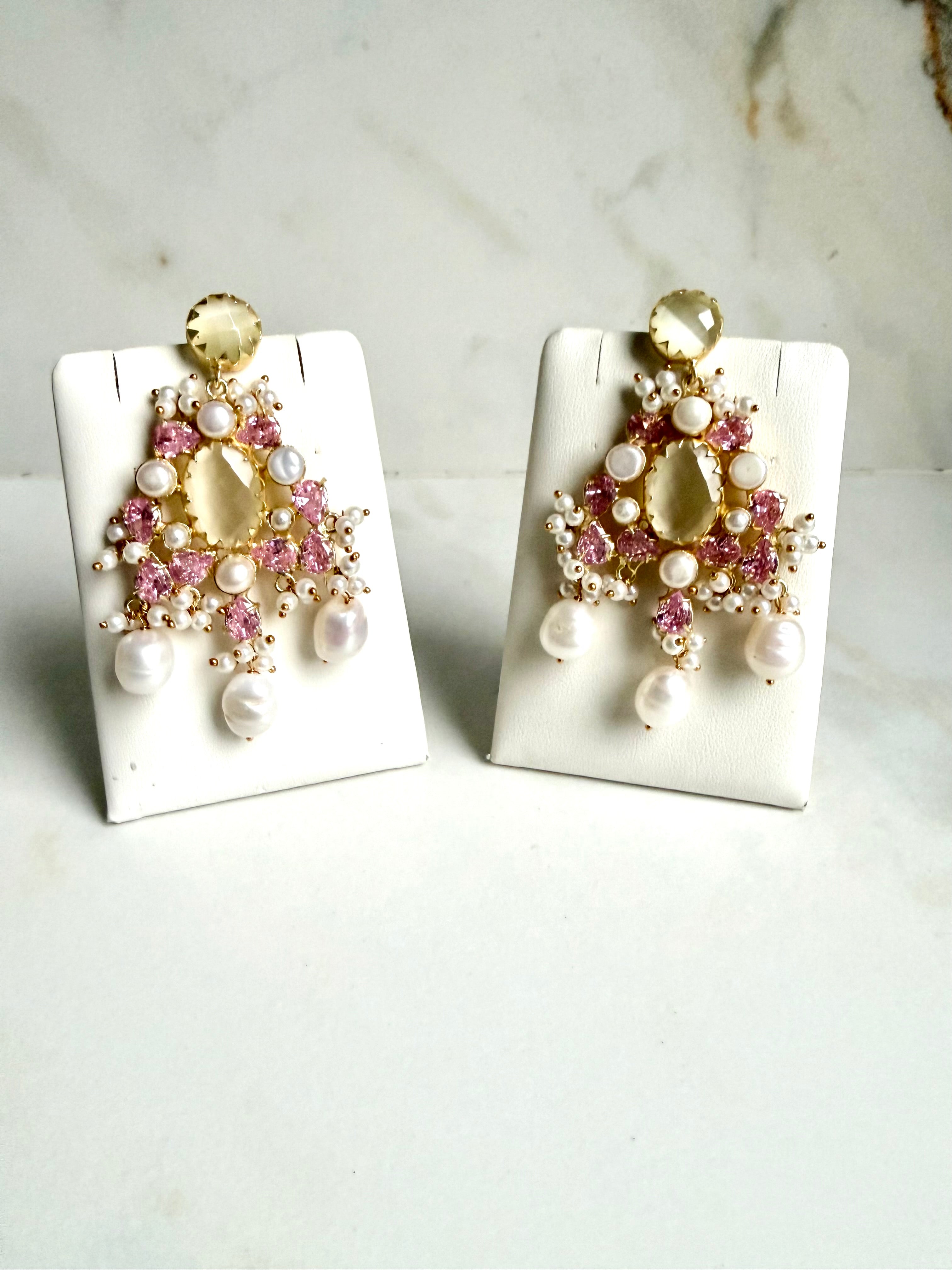 Discover timeless elegance with our Citrine Chandelier Luxury Earrings. The large oval stone in the center and round stud at the top exude sophistication. This transparent gemstone boasts a warm champagne or pale yellow color, making it a versatile addition to any jewelry collection. Experience the luxurious radiance of citrine today.