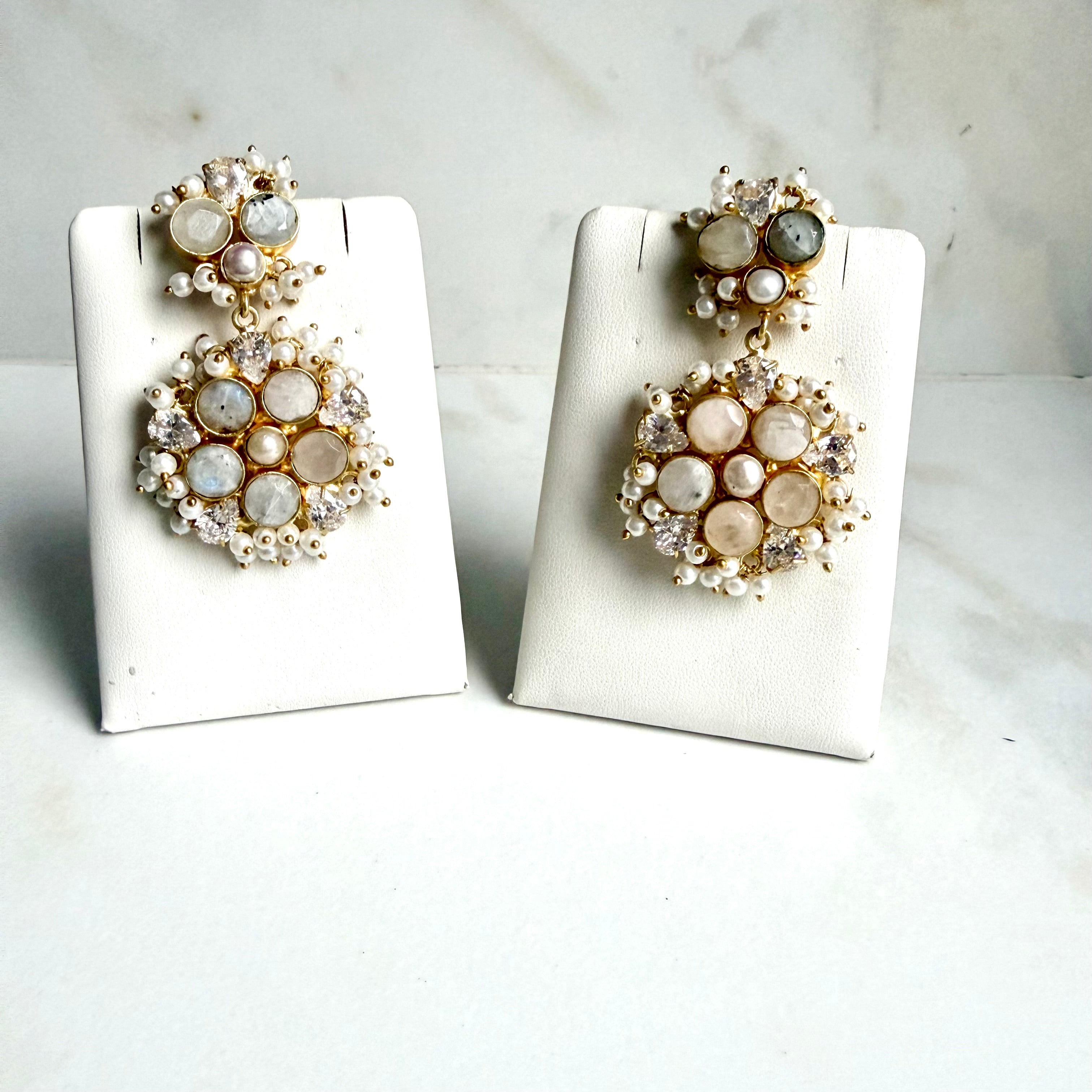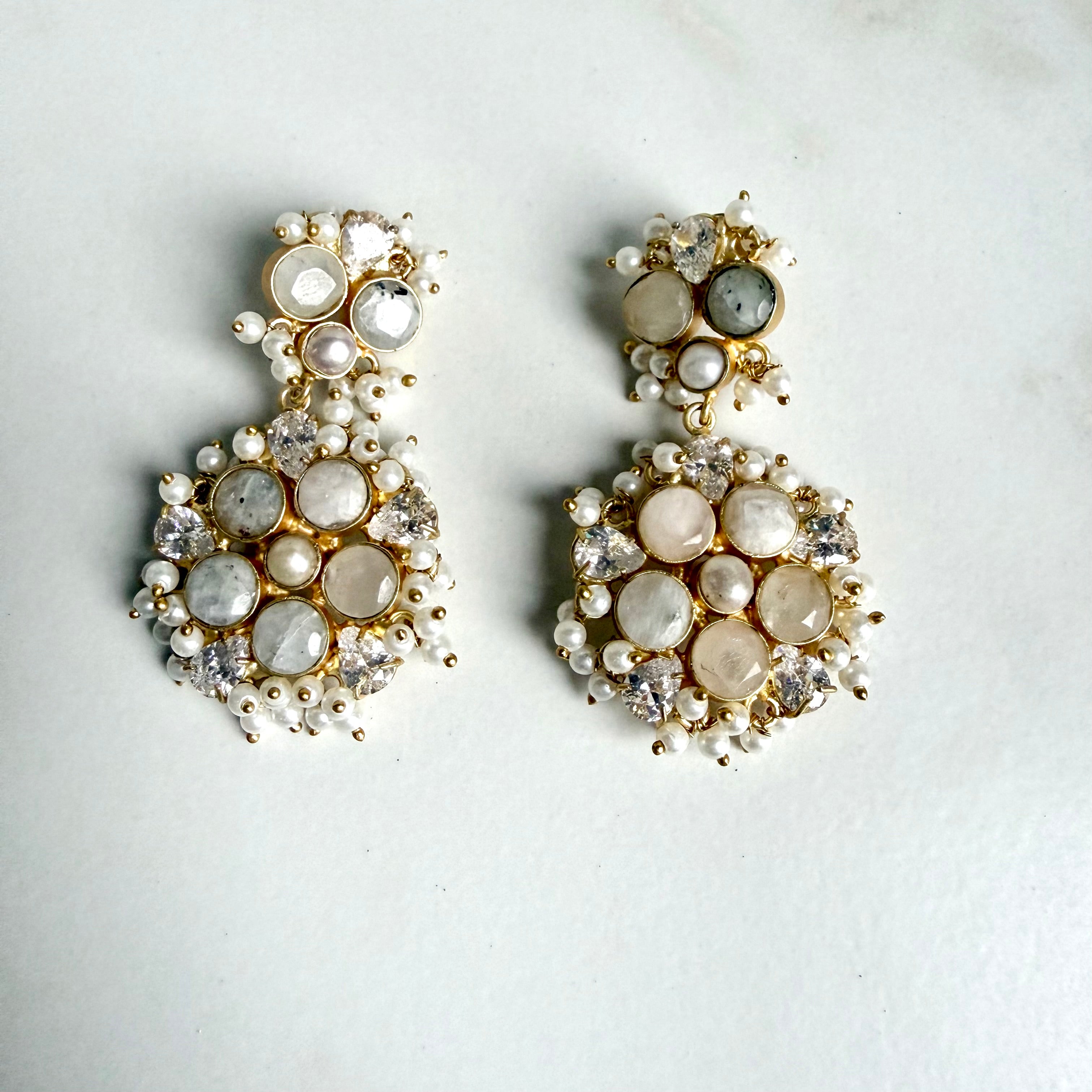 The cluster setting creates depth and brilliance without excess, while the drop style adds graceful movement that flatters every face shape. Whether worn with traditional Indian attire or modern evening ensembles, these earrings transition effortlessly across occasions, seasons, and eras.