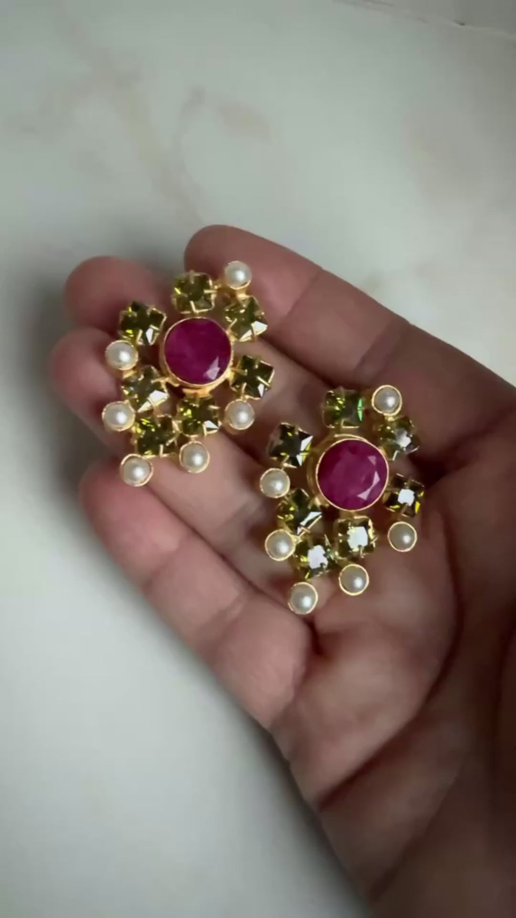 Elevate your style with our Lavanya Ruby Crystal Studs. Featuring beautiful Ruby & crystals add stunning center pearl, these earrings add a touch of glamour to any look. Their timeless design makes them a versatile accessory for any occasion. Upgrade your jewelry collection today.
