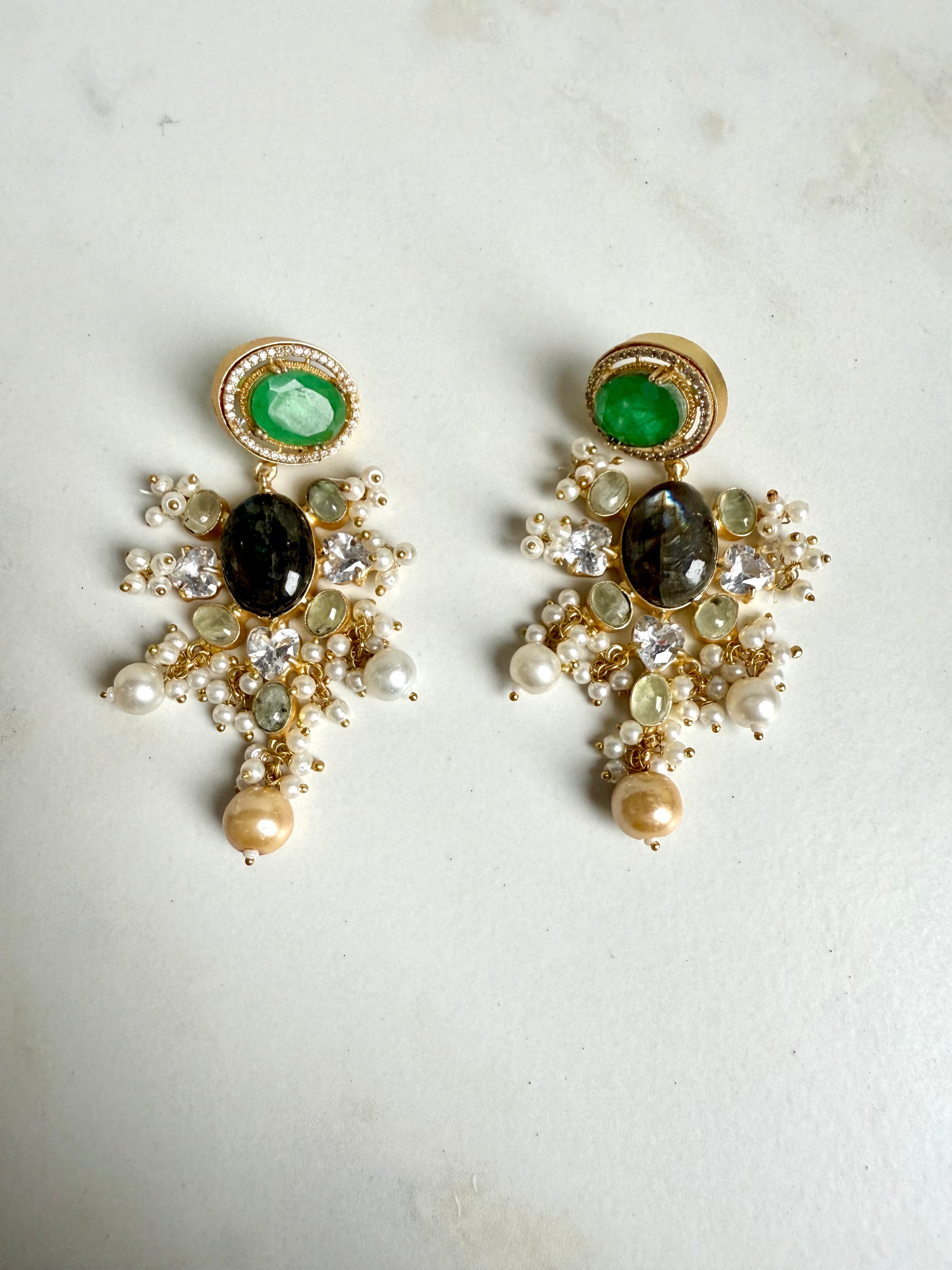 Experience the wow factor with our Mahima labradorite Drop Earrings. The stunning design and gorgeous amzonite gemstones make these earrings a must-have accessory. Add a touch of elegance and sophistication to any outfit with these beautiful drop earrings. Perfect for any fashion-forward individual.