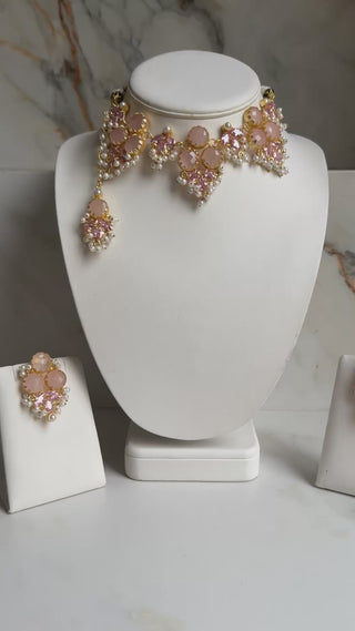 Expertly crafted with precision and elegance, the Marie Quartz Crystal Set features a stunning combination of pink and yellow crystals. Add a touch of luxury to any outfit and exude confidence with this beautiful set.