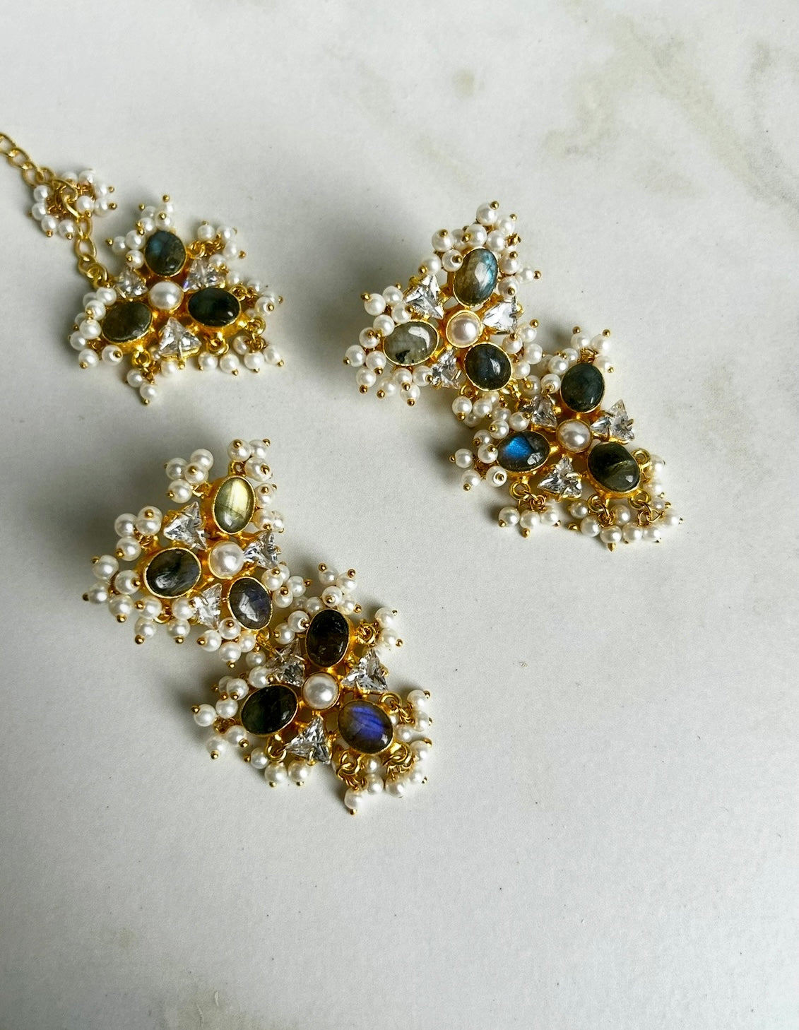 Expertly crafted with genuine labradorite stones, the Labradorite Tika Set is the perfect addition to any jewelry collection. The unique shimmer and iridescence of labradorite make it a standout piece that is sure to turn heads. Elevate your style and channel the power of this mesmerizing gemstone with this stunning set.