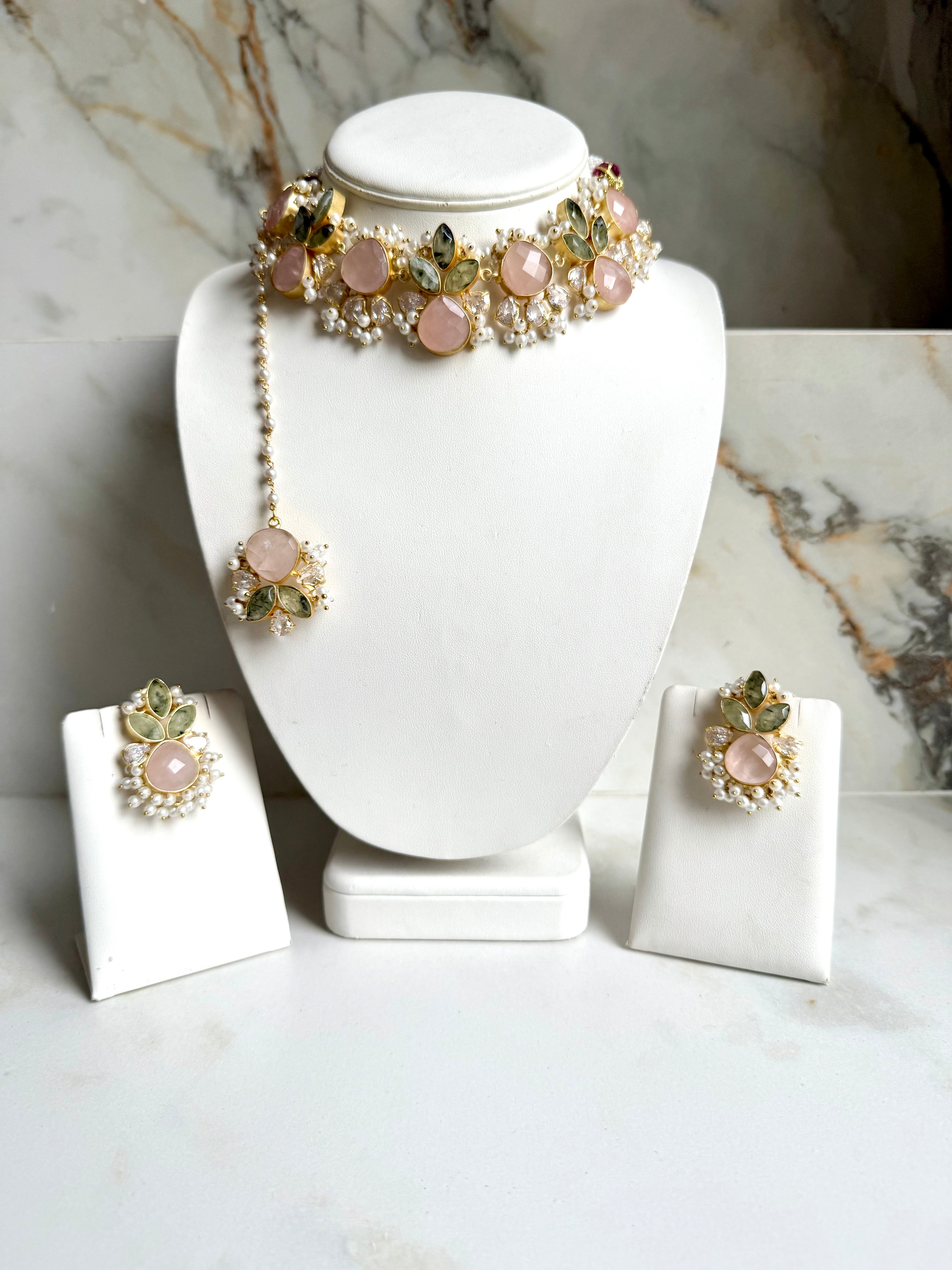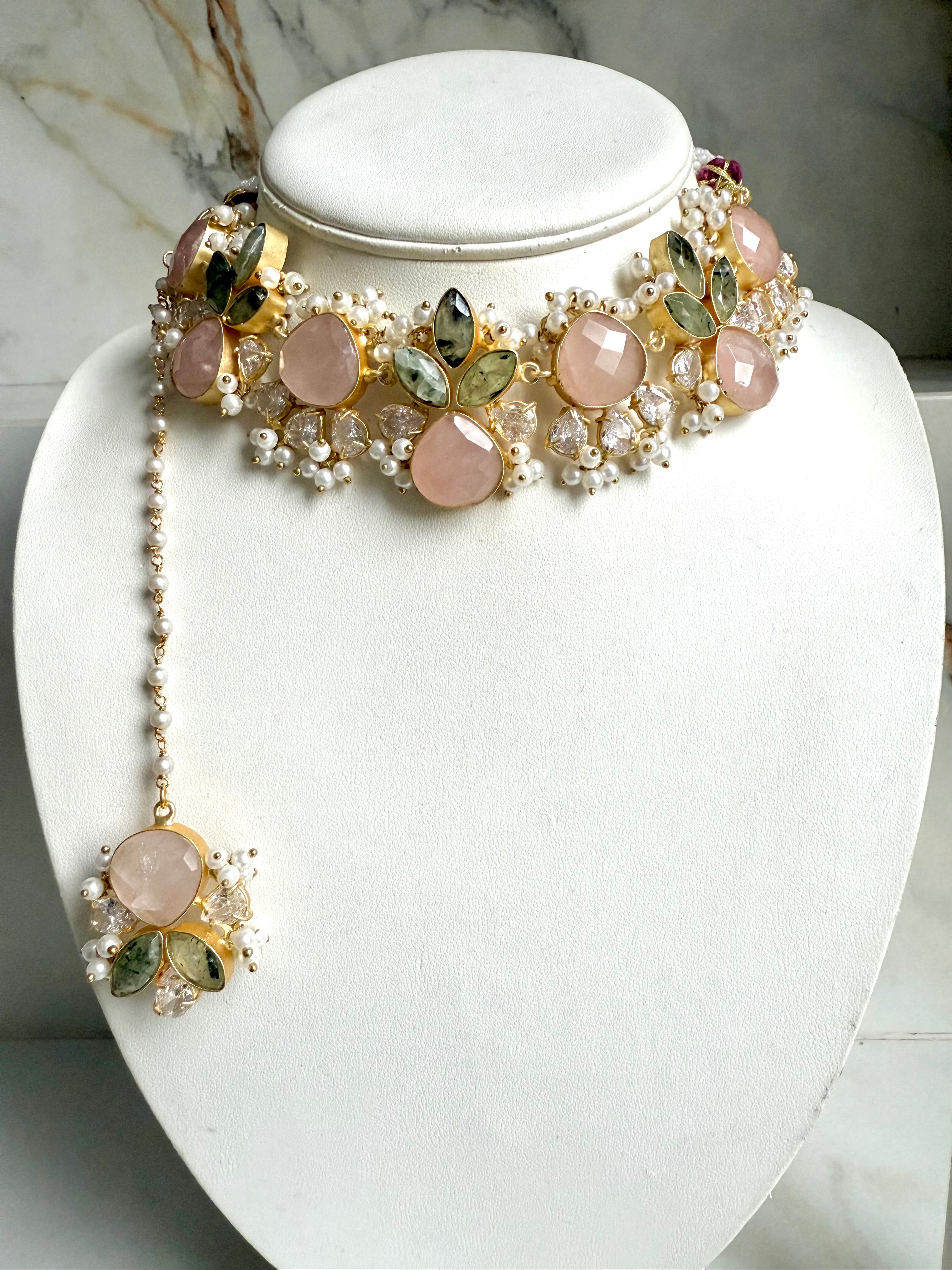 This exquisite Alia Quartz set features a stunning jewellery design with sparkling crystals on the sides. The perfect accessory for any occasion, this set adds an elegant touch to any outfit. The side crystals add a touch of glamour, making you stand out in any crowd. Make a fashionable statement with this beautiful set.