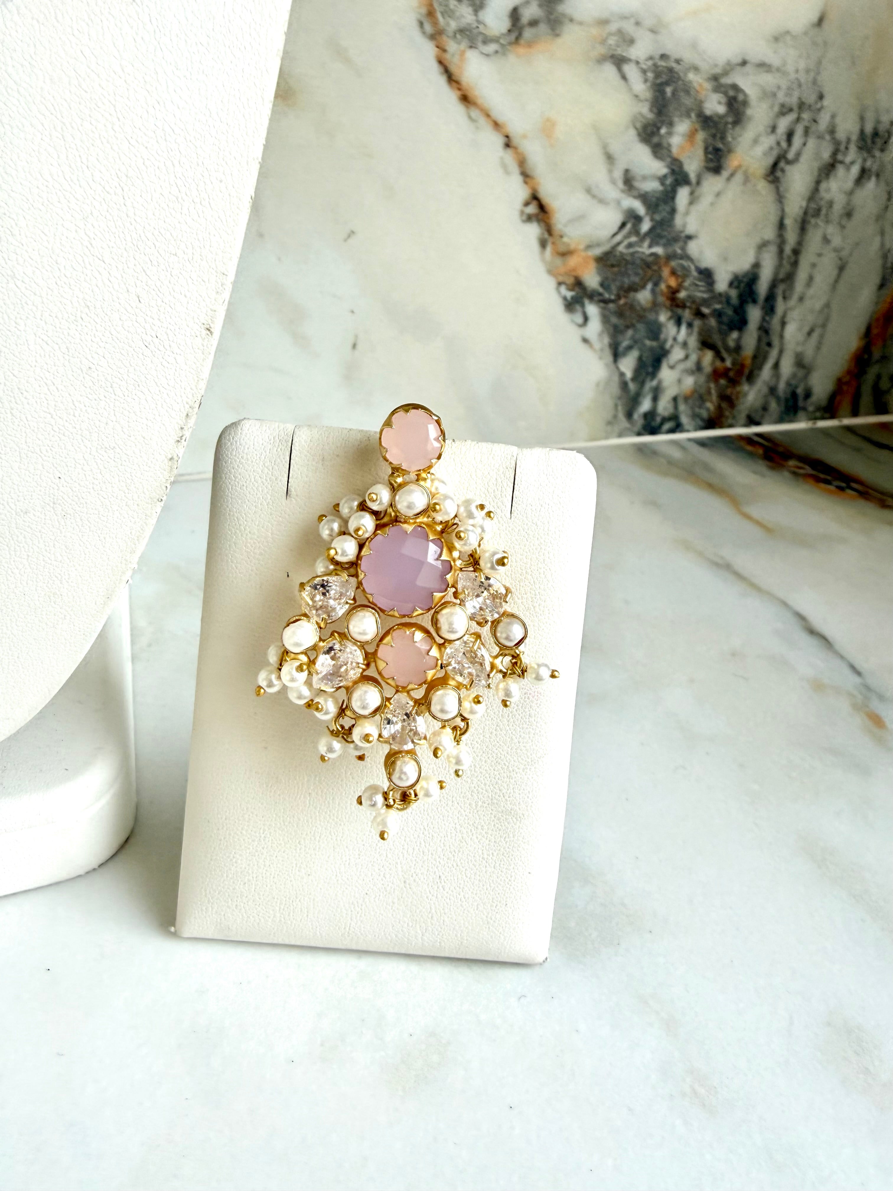 Paired with statement earrings, a coordinating tikka, and an elegant pasa, this set is designed to create a complete bridal or festive look. The soft pink tones combined with gold and pearl detailing make it perfect for weddings, receptions, and special celebrations where timeless beauty meets modern sophistication.