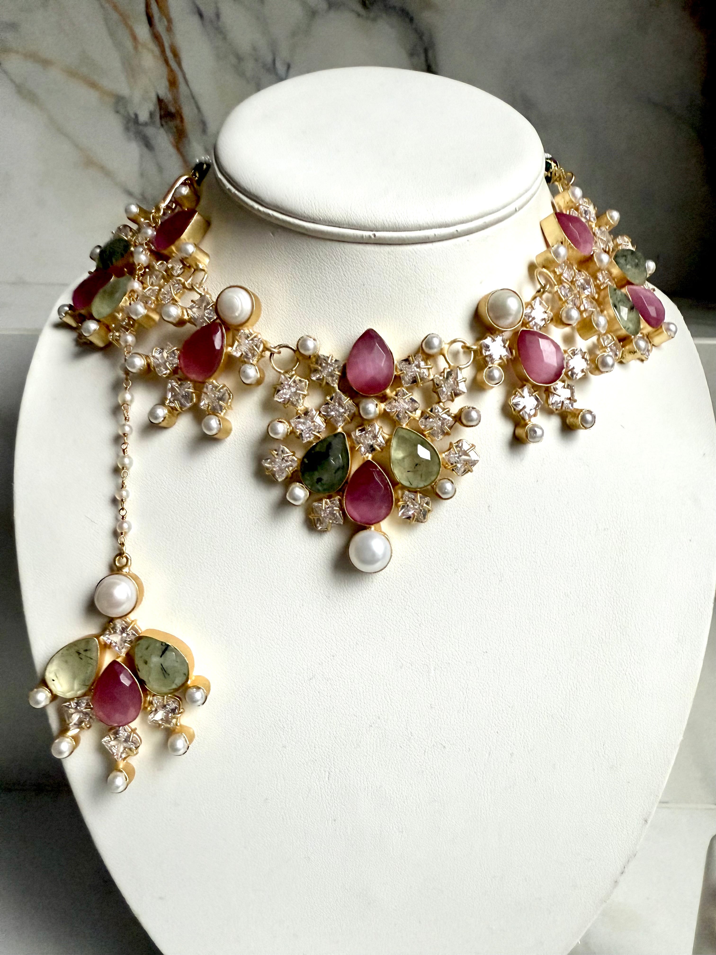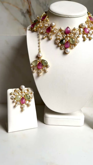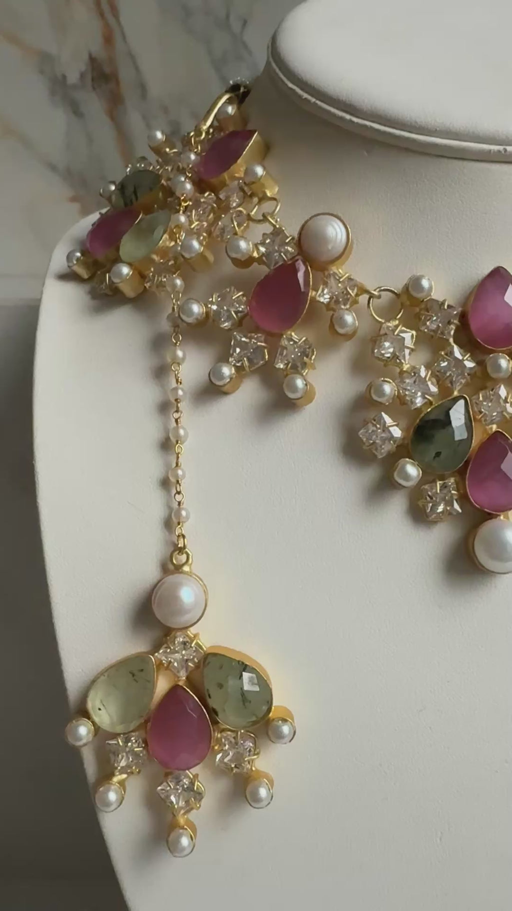 This Luxury pink Set features stunning gemstones crystals, making it the perfect choice for weddings and other special occasions. With its elegant design, this set exudes luxury and sophistication, adding a touch of glamour to any ensemble. Elevate your accessories collection with this gorgeous set.