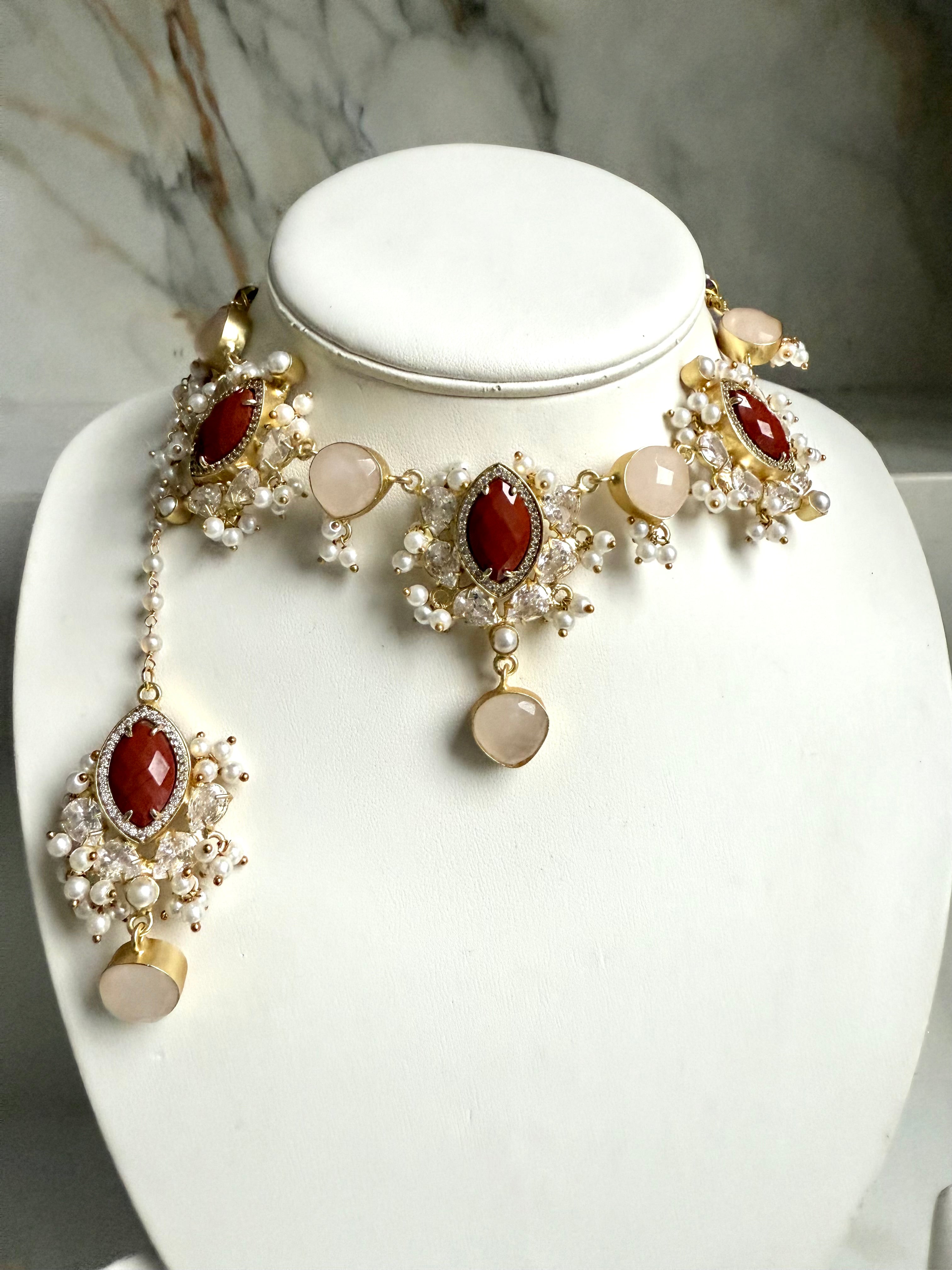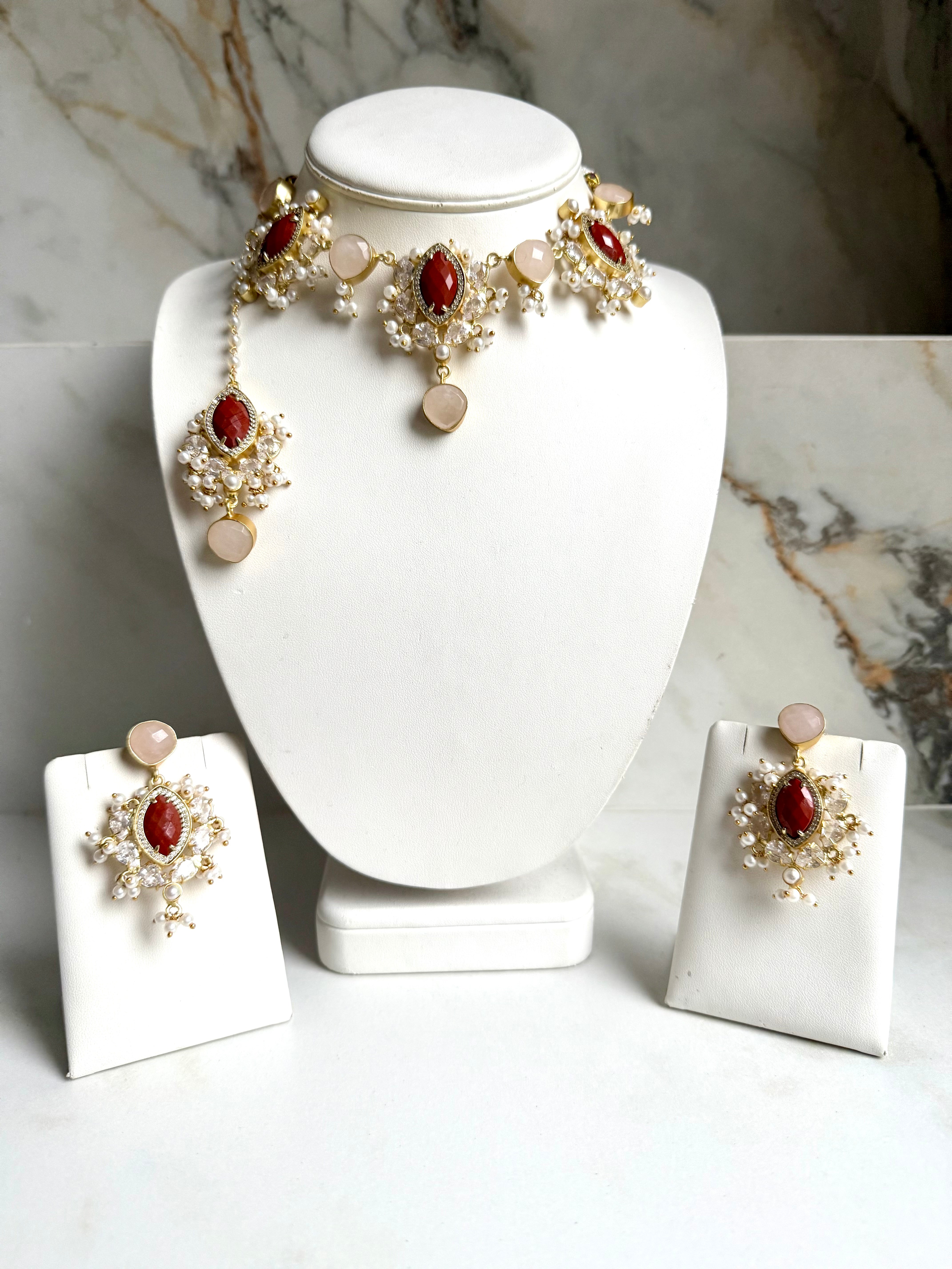 The Mina Ruby Set boasts a stunning crystal design that enhances your overall look. Crafted with quality materials, this set will elevate any outfit with its elegant and eye-catching appeal. Perfect for any occasion, this set is a must-have addition to your jewelry collection.