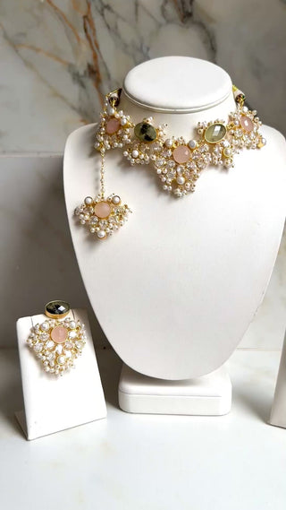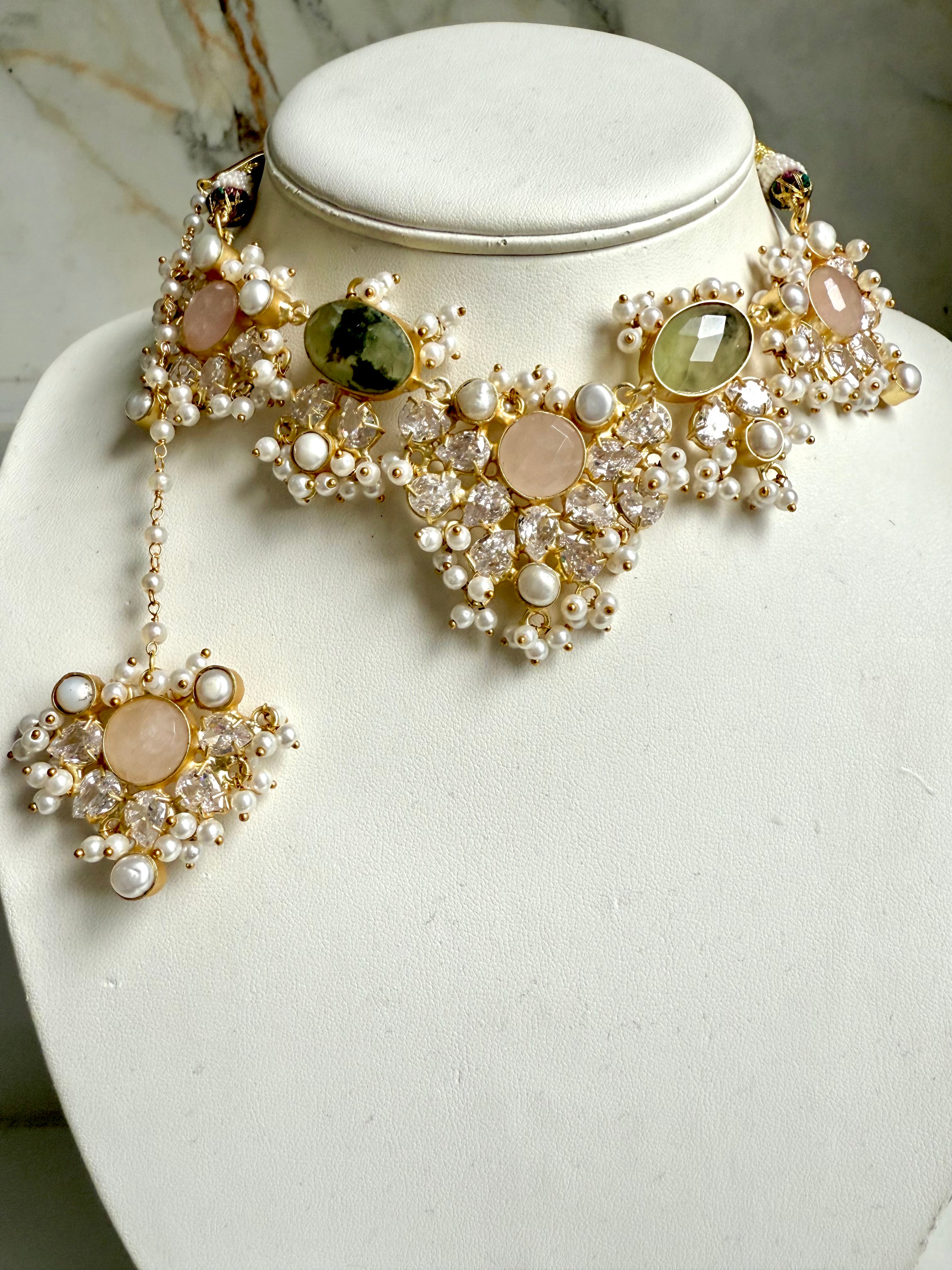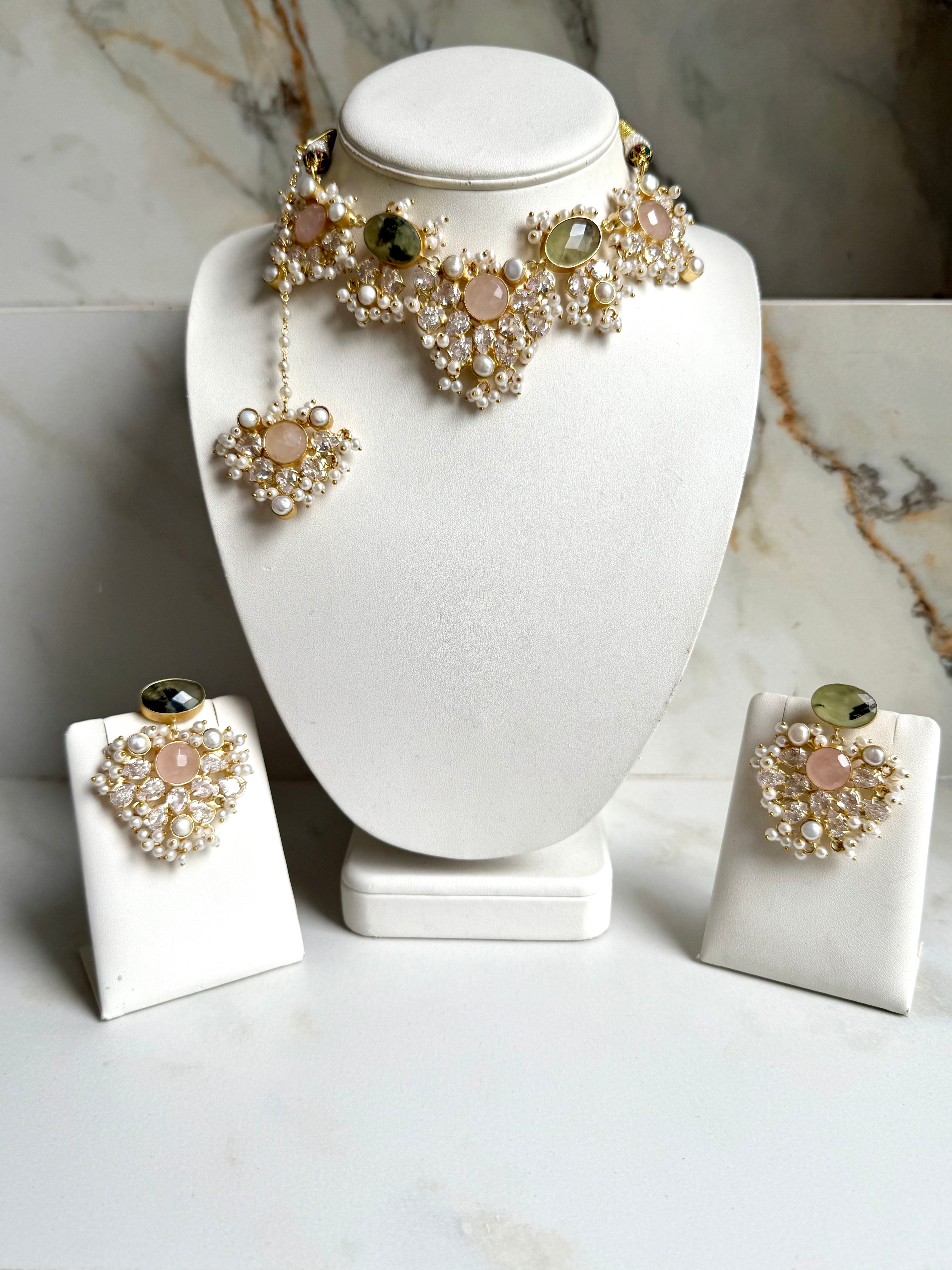 Introduce some natural healing to your jewelry collection with the Nabila Crystal Set. This gorgeous crystal set features polished quartz and prehnite stones, perfect for enhancing your well-being and balance. Elevate your style and positive energy with this unique and beautiful set.