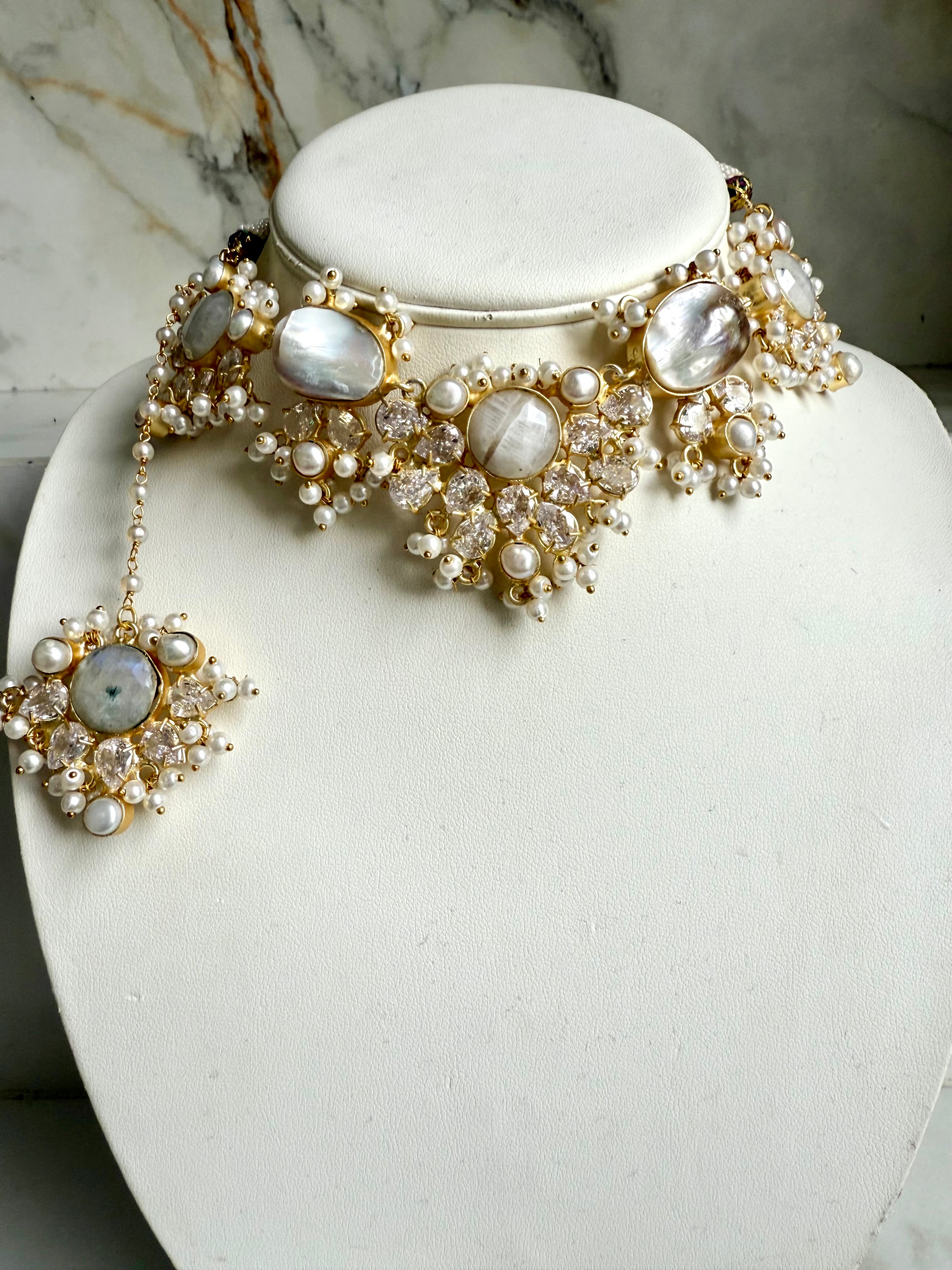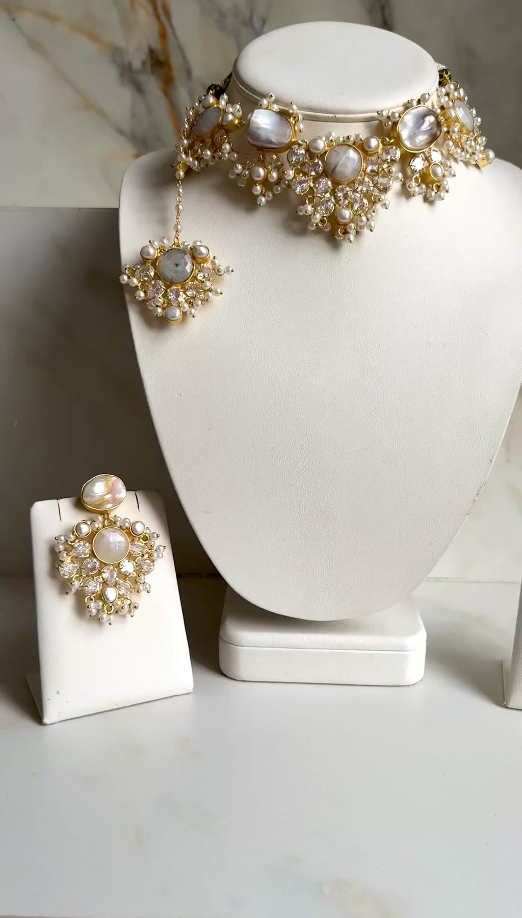 This Nabila Pearl Crystal Set adds a touch of elegance and sparkle to any outfit. The gorgeous set features lustrous pearls and shimmering crystals, perfect for a formal event or a dazzling everyday look. Enhance your style with this timeless and luxurious set.
