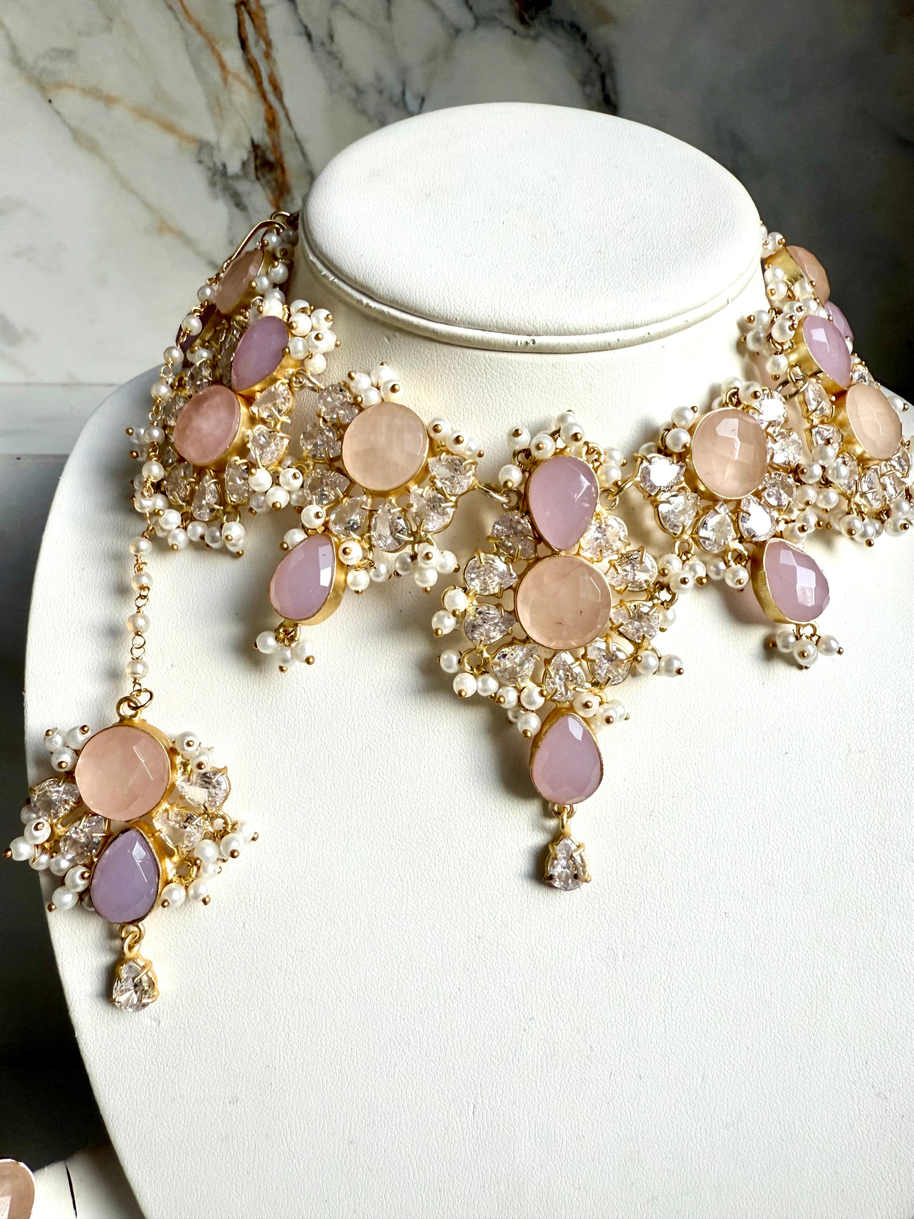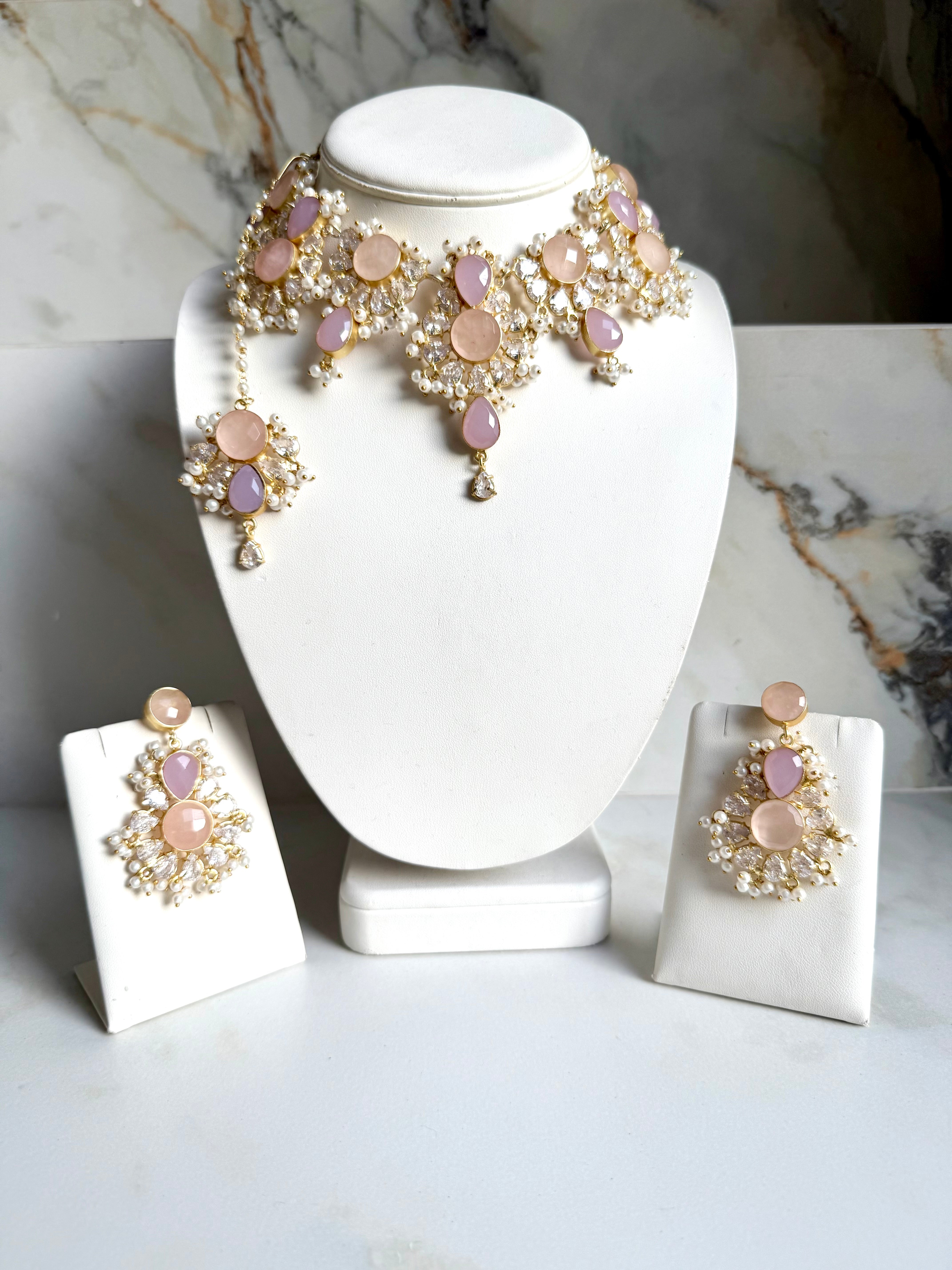 Upgrade your special day with the Sumiya Luxury Heavy Set. Made with exquisite stones, this bridal set exudes elegance and sophistication. You'll feel like royalty with its luxurious and heavy design, making for a gorgeous addition to your ensemble. Elevate your wedding look with this stunning accessory.