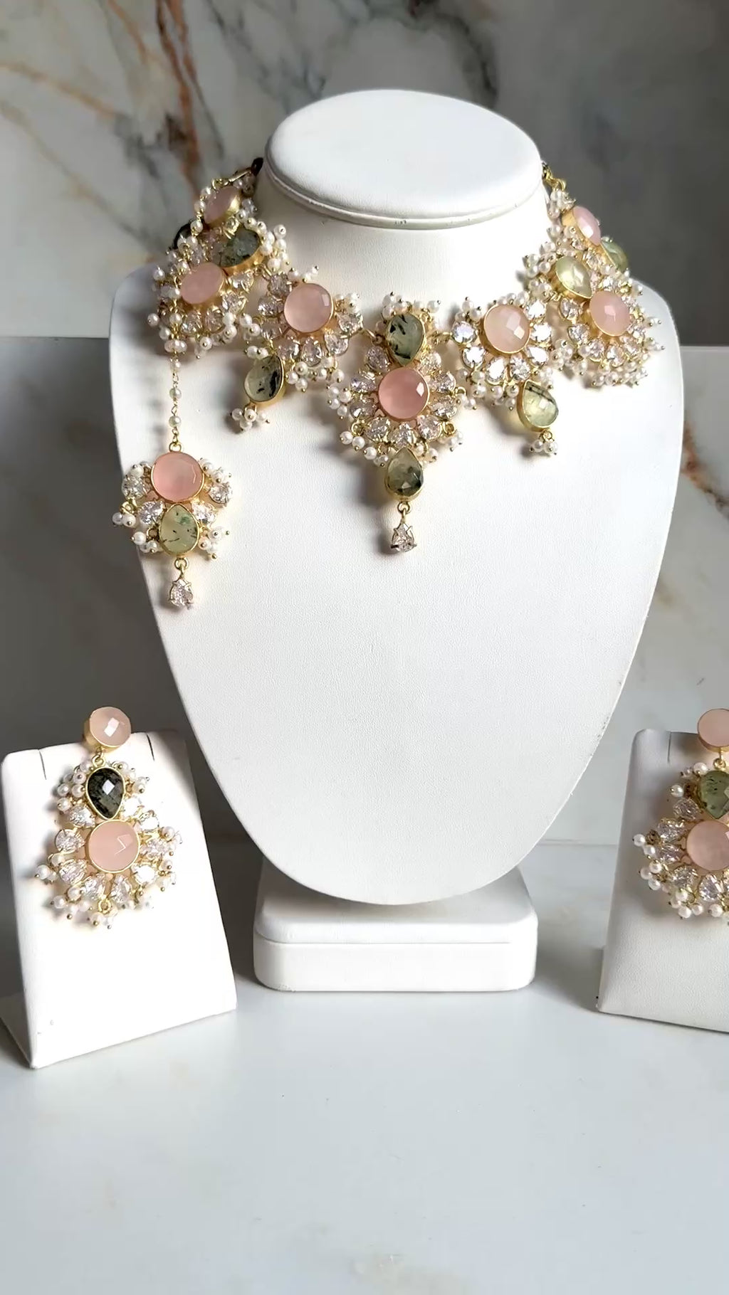 Upgrade your special day with the Sumiya Luxury Heavy Set. Made with exquisite quartzstones, this bridal set exudes elegance and sophistication. You'll feel like royalty with its luxurious and heavy design, making for a gorgeous addition to your ensemble. Elevate your wedding look with this stunning accessory.